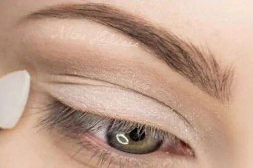Для начала выдели внешний уголок глаза и нижнее веко бежевыми тенями.