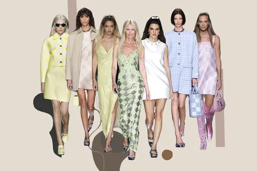 Вероятно, грядущей весной в тренде будет шахматный принт. Дизайнер показала, что рисунки могут отличаться друг от друга — например, верх с крупной клеткой, а низ — с мелкой. Главное, чтобы изделия были одного цвета.