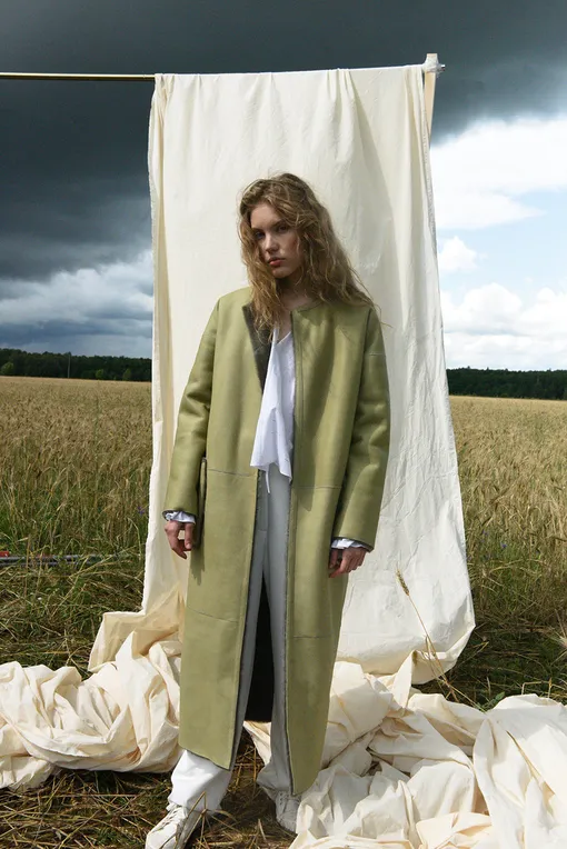 В коллекции появляется новая для бренда категория: куртки-рубашки из овчины, рассчитанные на раннюю осень. Дубленки расслабленных силуэтов обзавелись объемными капюшонами, а приталенные пальто с цельнокроеным рукавом – съемными поясными сумками. Все дубленки можно носить на обе стороны, чтобы максимально раскрыть красоту их материала. Вдохновение идет от естественной красоты, осознания ценности природы и гармоничности взаимоотношений планеты и человека.