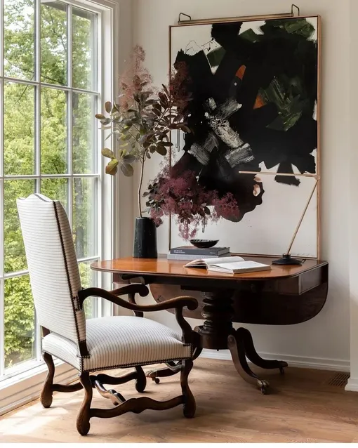 Если винтажный кабинет — слишком смелое решение для вас, разбавьте интерьер антикварными деталями, например, старыми зеркалами, рамами, вазами или посудой.
