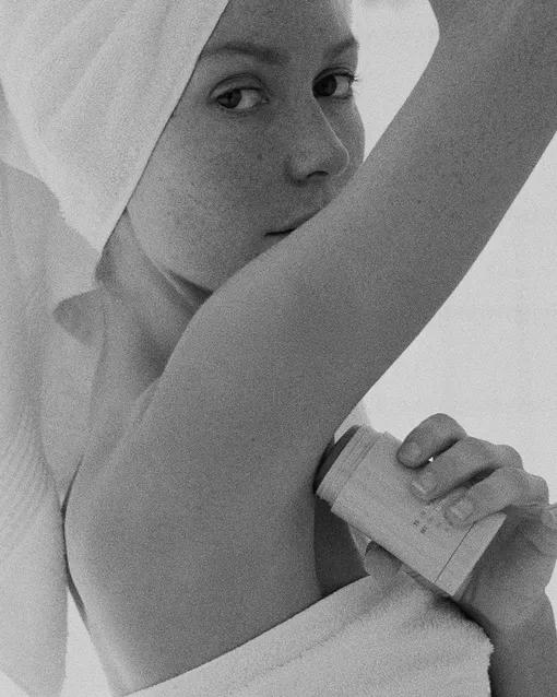 Первое правило: средство наносят исключительно на чистую и абсолютно сухую кожу. После душа тщательно промокните зону подмышек полотенцем — даже легкая влага помешает адгезии (прим. ред.: адгезия — способность средства удерживаться на поверхности кожи, не скатываясь). Распределяйте продукт тонким равномерным слоем. Излишки не усиливают защиту, а, напротив, часто становятся причиной белых следов на темных вещах и ощущения липкости. Дайте дезодоранту время полностью впитаться и высохнуть. Обычно хватает одной-двух минут. Только после этого можно одеваться. Если вы используете классический кристалл, слегка смочите его поверхность водой, а затем обработайте кожу.