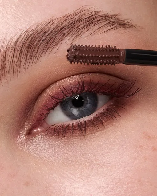 Чтобы сделать идеальный макияж с коричневой тушью, придерживайтесь нескольких правил. Во-первых, откажитесь от черной подводки. Ее заменит коричневый карандаш. Им можно подвести межресничное пространство и слизистую, а затем растушевать — получится нежная дымчатая стрелка. Второй секрет — в правильной гамме. Выбирайте тени в бежевых, кофейных, персиковых или розовых тонах. Допустимы любые приглушенные природные оттенки. От ярких и темных цветов лучше отказаться: они будут перетягивать внимание на себя. Брови достаточно оформить гелем. Сначала распределите средство по всем волоскам, а затем зачешите их вверх. В конце слегка пригладьте, будто приклеивая к коже, — для этого можно использовать колпачок от продукта.