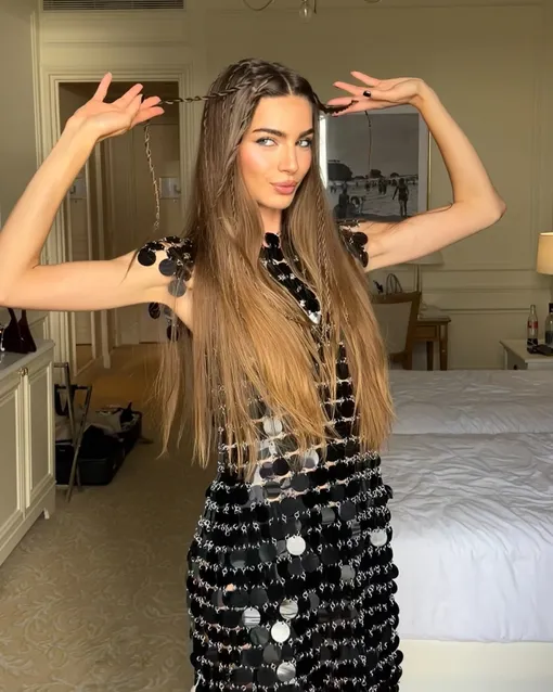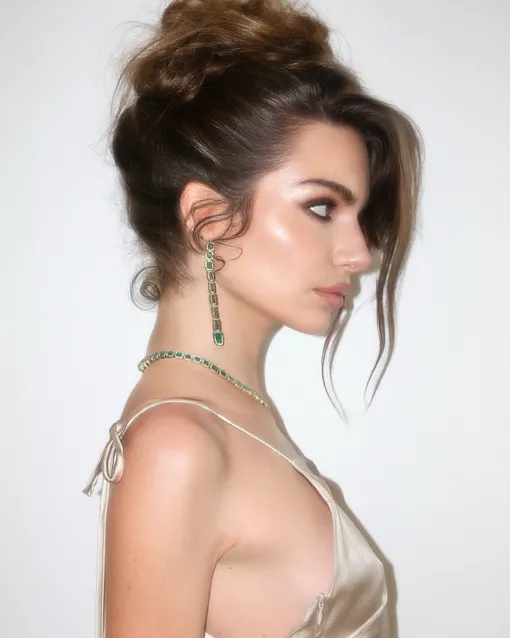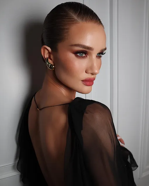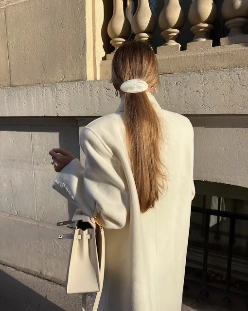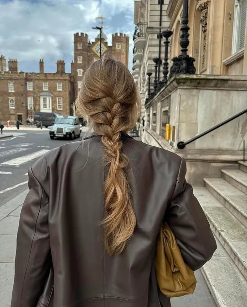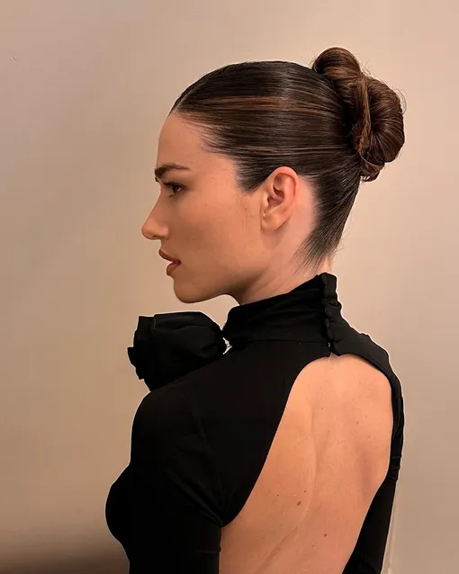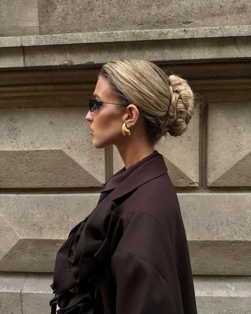 Гладкие укладки были ключевым трендом весь 2025 год и сохранят актуальность в 2026-м. Единственное, что сейчас поменялось, — пробор. Если раньше доминировал прямой, то сегодня в приоритете боковой. Чтобы повторить прическу, нанесите на волосы фиксирующий гель, матовую пасту или пену, распределяя средство от корней к кончикам расческой с частыми зубьями. Выбившиеся прядки уложите позже гелем для бровей или восковым карандашом. Затем соберите шевелюру на затылке в тугой хвост, скрутите длину в плотный жгут и сверните его в «улитку». Альтернатива — разделить локоны на две части, переплести их друг с другом и затем сформировать пучок. Можно оставить и классический хвост, но для этого варианта волосы стоит предварительно выпрямить. В завершение нанесите немного сияющей сыворотки.