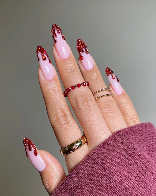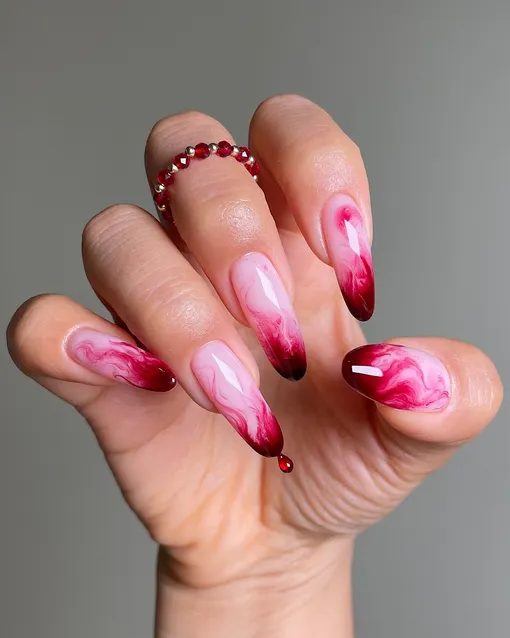 Также не стоит забывать о различных «кровавых» дизайнах. Их преимущество в универсальности и огромном разнообразии. Можете добавить стразы или объемные украшения для ногтей — даже пирсинг, который в последнее время набирает популярность, круто впишется именно в такой нейл-арт.