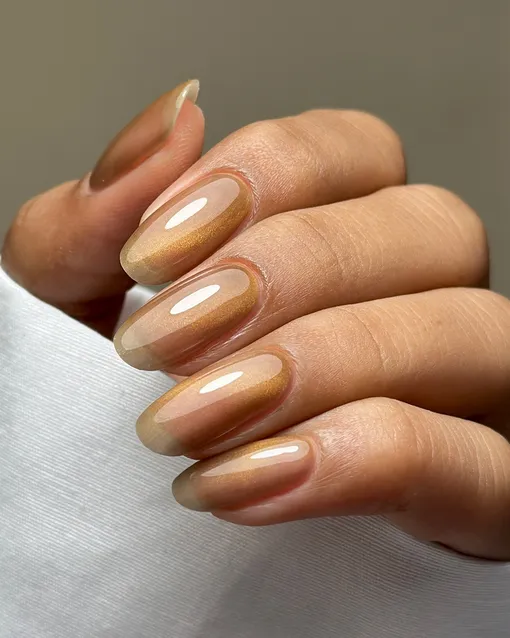 Не стоит забывать про френч — он может быть как с обычным золотым лаком, так и более изощренным и интересным — с добавлением техники «кошачий глаз» или «обводной френч». Он тоже выглядит интересно, но при этом остается достаточно сдержанным.
