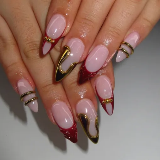 22 идеи маникюра в красно-золотых оттенках, которые можно повторить накануне Нового года