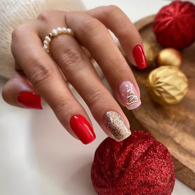 22 идеи маникюра в красно-золотых оттенках, которые можно повторить накануне Нового года
