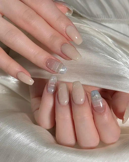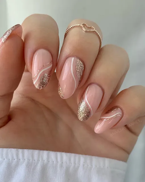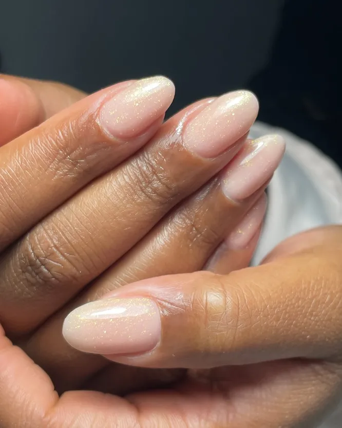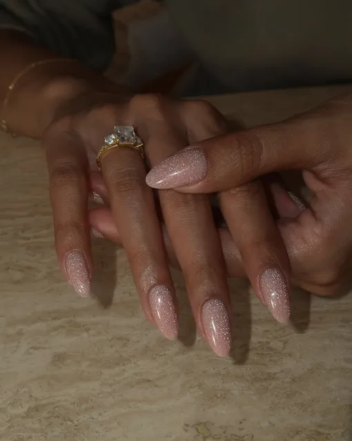 25 идей для нюдового маникюра с блестками, которые можно повторить в декабре-2025