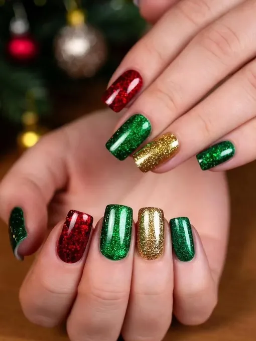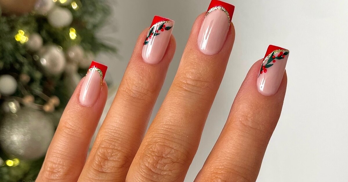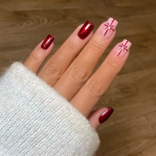 30 идей новогоднего маникюра на квадратные ногти, которые можно сделать в декабре-2025