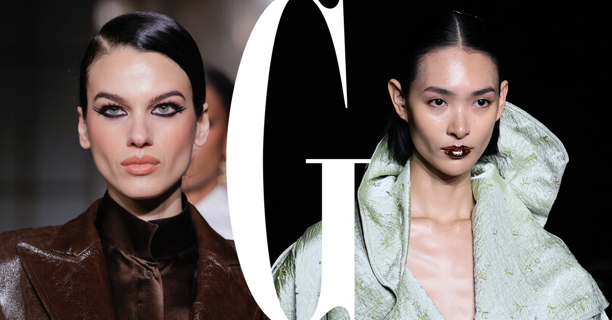 В 2010-х такие стрелки были для нас нормой, но потом их сочли неестественными и слишком агрессивными. Однако в следующем холодном сезоне они снова окажутся на пике популярности. Такие линии должны быть не просто широкими и длинными, а закрывать практически половину века и доходить до кончика брови. Именно этот вариант мы увидели у моделей на показе коллекции Bibhu Mohapatra. Безусловно, это не дневной вариант, а интересная альтернатива привычным смоки айс для вечера. Чтобы без проблем повторить такой макияж, советуем сначала наметить форму тенями, а затем провести сверху стрелку жидкой подводкой. Причем добиваться идеальной симметрии совершенно не нужно: если один конец окажется длиннее или будет смотреть под другим углом, ничего страшного. Губы в этом случае лучше оставить нейтральными — выделите их прозрачным или оттеночным бальзамом.