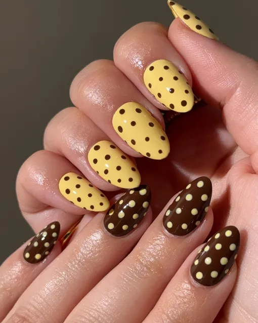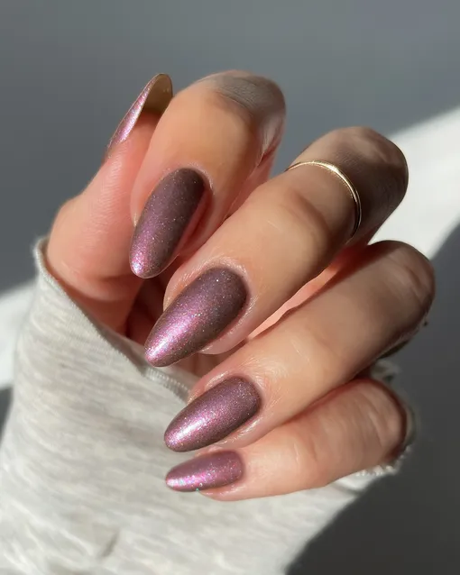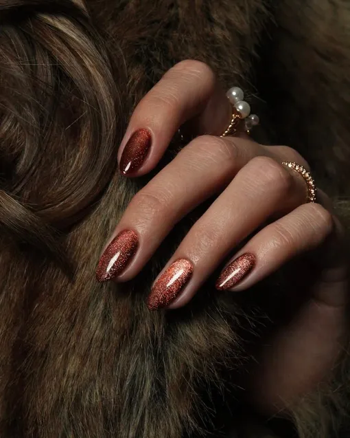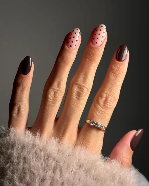 Коричневый становится в этом году символом надежности и стабильности. Для несущейся вперед Огненной Лошади этот цвет служит точкой опоры, помогая обрести уверенность и устойчивость на своем пути. Палитра варьируется от теплого карамельного до насыщенного горького шоколада. Это беспроигрышное решение для ценителей сдержанной элегантности. Подобный маникюр можно оставить монохромным или попробовать модный дизайн «кошачий глаз». Еще один интересный вариант — кофейные разводы. Для этого мастер смешивает на ногтевой пластине шоколадный и молочный оттенки, чтобы создать эффект, напоминающий о стаканчике латте.