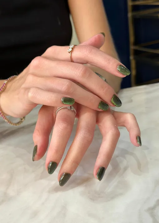 Зеленый олицетворяет рост, стабильность и гармонию, мягко балансируя бурную энергию Лошади. Это цвет финансового благополучия и внутреннего равновесия. Актуальны природные тона: хвойный, изумрудный, шалфейный. Для более сдержанного бьюти-образа обратите внимание на оливковый или хаки — они также будут популярны. Идеальное решение — однотонное покрытие. Если глянцевый лак кажется слишком простым, попробуйте добавить втирку или блесток. Еще один трендовый дизайн, о котором мы недавно рассказывали, — эффект дымки. В этом случае в центр ногтя наносят светлый оттенок, а к краям создают аккуратный переход к более темному, формируя своеобразную рамку.