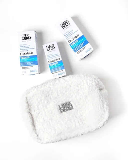 Если косметичка выглядит как трендовая teddy-bag, она сразу становится главным аксессуаром сезона. Librederm выпустил именно такую: пушистую, мягкую, стильную. Ее можно смело носить с собой вместо клатча. Внутри — не просто пробники, а полноценные спасатели для кожи зимой: средства линейки Cerafavit с церамидами и пребиотиком. Они восстанавливают гидролипидный барьер кожи после мороза и сухого воздуха в отапливаемых помещениях. Эти продукты для базового ухода в холодное время года подойдут каждой.