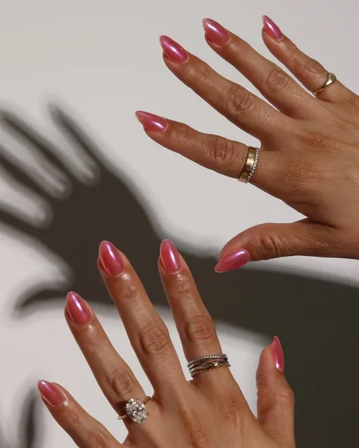 К слову, вам вовсе не обязательно останавливаться на том же оттенке розового, что у Селены. Он может быть более ярким и розовым, если вам нравится подобный цвет. А еще не забывайте о том, что, как и другие лаконичные дизайны ногтей, blush jelly chrome позволяет вашей фантазии разгуляться — его можно дополнить лаконичными узорами или аксессуарами для ногтей, которые стали особенно популярны в конце лета.