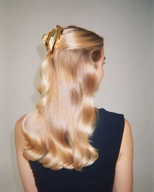 Мягкие голливудские локоны остаются беспроигрышным праздничным решением, добавляя бьюти-образу элегантности. Если у вас есть плойка или щипцы среднего диаметра, накрутите на них пряди, оставив кончики почти прямыми. Дайте шевелюре полностью остыть, затем аккуратно расчешите ее и зафиксируйте лаком. Если подходящего инструмента нет, попробуйте холодный способ. На слегка влажные волосы нанесите гель для укладки. Сформируйте волну, укладывая пряди S-образными изгибами. Зафиксируйте каждый из них зажимом до полного высыхания. Готовую укладку можно сбрызнуть спреем с шиммером для дополнительного блеска.