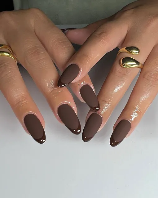 Игра на контрасте — еще один тренд. Для такого новогоднего дизайна эксперт советует обратить внимание на «вкусные» оттенки шоколада, какао с молоком или корицы: «Сочетание матового и глянцевого покрытия выглядит дорого и современно. Поэтому нейл-арт с разными топами вновь берет верх, главное — не переусердствовать».