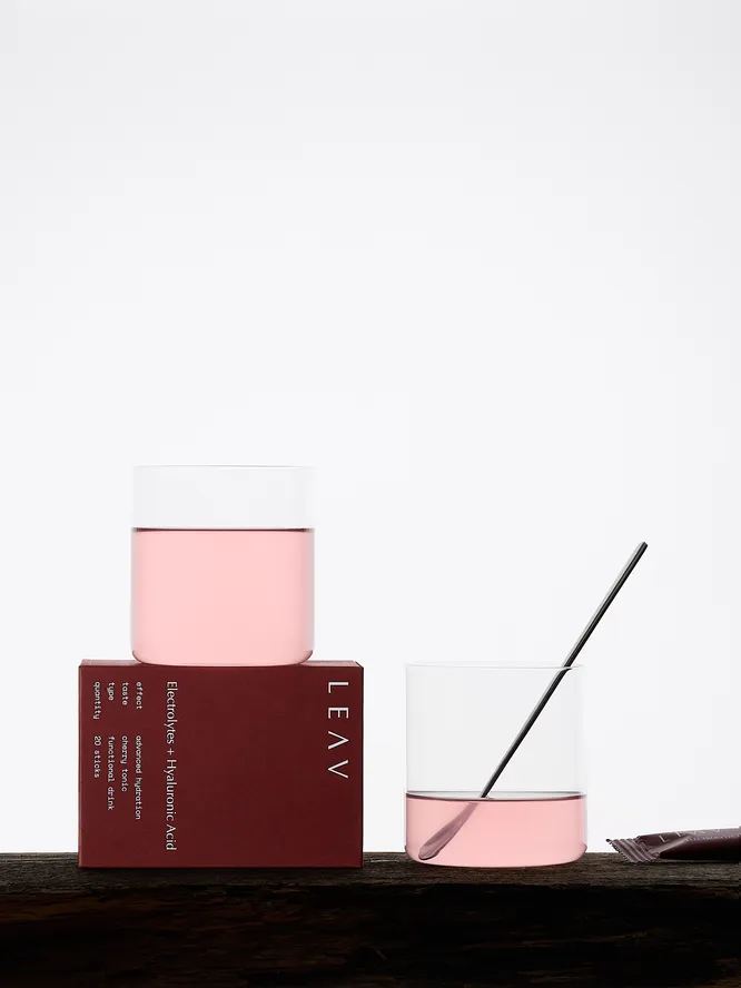 Зимой кожа и слизистые часто страдают от сухости из-за жарящих батарей и холодного ветра, а организм мучается от обезвоживания — ведь мороз притупляет чувство жажды, хотя мы теряем влагу активнее. Исправить ситуацию одной лишь водой бывает сложно. Особенно если вы ведете активный образ жизни, часто летаете или просто забываете пить в течение дня. Бренд LEAV обновил свой популярный растворимый напиток с электролитами: теперь в составе есть и гиалуроновая кислота. Идея в том, чтобы не только быстро восполнить потерю влаги и солей, но и помочь организму лучше ее удерживать. Вкус — вишня, без лишней сладости. Формат — порционные стики на семь или двадцать суток, чтобы легко внедрить новую привычку в ежедневный ритуал. Просто растворите в стакане или бутылке с водой — и готово.