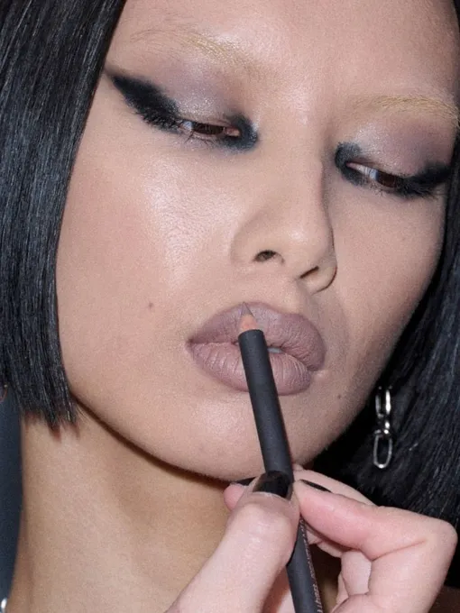 Если вы принадлежите к числу обладательниц бледной кожи, то помаду оттенка Folio сможете использовать не только для губ, но и для минимального контуринга — тенденция на макияж одним продуктом никуда не делась. А вот девушки с более теплым оттенком кожи лица и губ могут рифмовать холодный бежевый цвет помады с более теплым карандашом и добавлять блеск для губ — получится менее дерзко, но все еще довольно интересно.