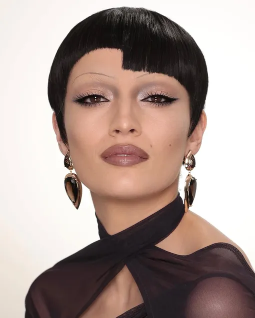 Это макияж в эстетике 1930-х, переосмысленный на современный лад. Тон должен быть легким и сияющим — идеально подойдут BB-кремы или кушоны. Ретро-эффект достигается за счет нескольких приемов. Необходимо оформить тонкие брови — не обязательно выщипывать их, можно просто скорректировать консилером и прорисовать узкую линию карандашом или тенями. На веки плотным слоем наносят серо-коричневые тени, включая область под глазами. Дополнительно слизистую можно прокрасить шоколадным кайалом. Для губ выбирают терракотовые, красные или бордовые тона. Контур подчеркивают карандашом чуть темнее основного оттенка для большей выразительности. Этот макияж отсылает к образам Кэтрин Хепберн и Вивьен Ли и остается элегантным решением вне времени.