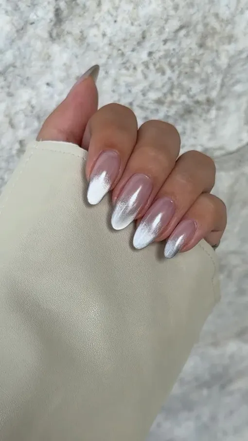 Зола Ганзориг, естественно, в своем блоге уже продемонстрировала, как повторить подобный маникюр — и мы планируем попробовать сделать это в ближайшем будущем. Для этого понадобится гель-лак и нюдовый топ. После этого Зола наносит пудру для эффекта «глазированного пончика». Затем на нижнюю часть ногтя наносится смесь из магнитной пудры нужного цвета (серебристого) и покрытия — на этом этапе необходимо с помощью кисти создать эффект легкого омбре, растушевав границу перехода из нюда в серебряный.