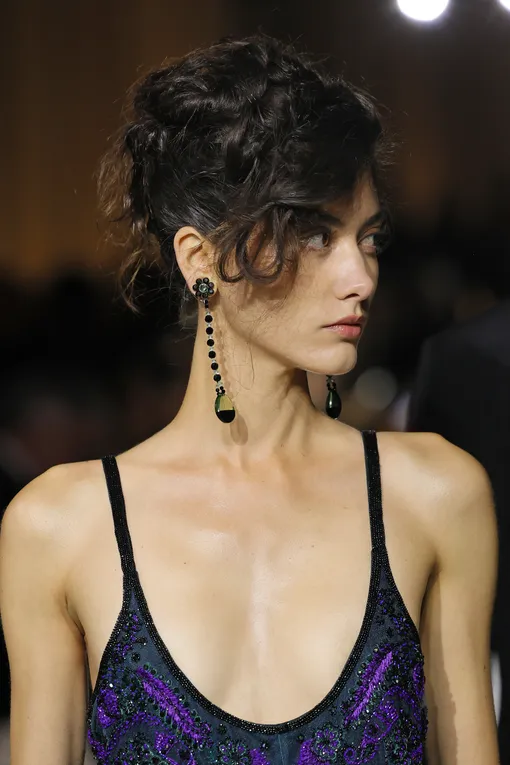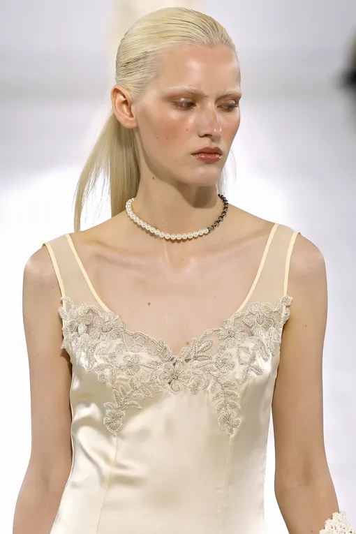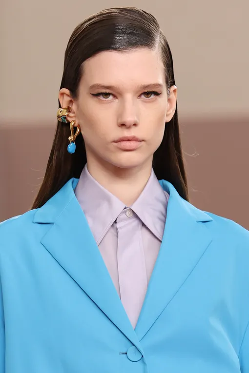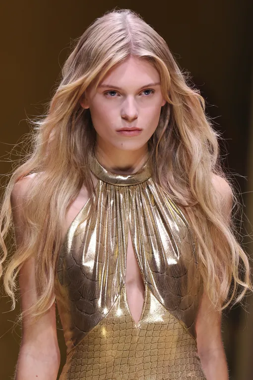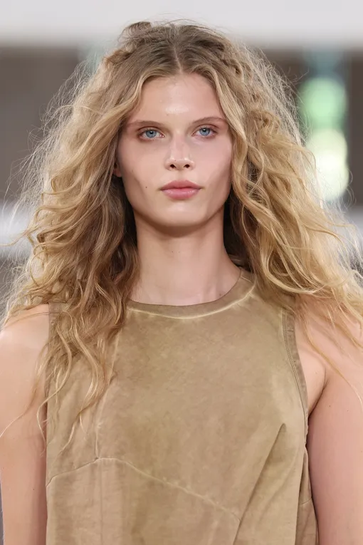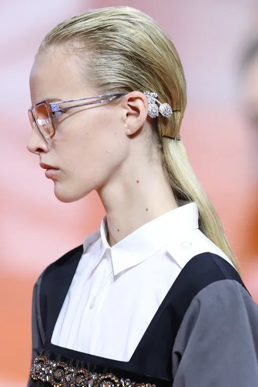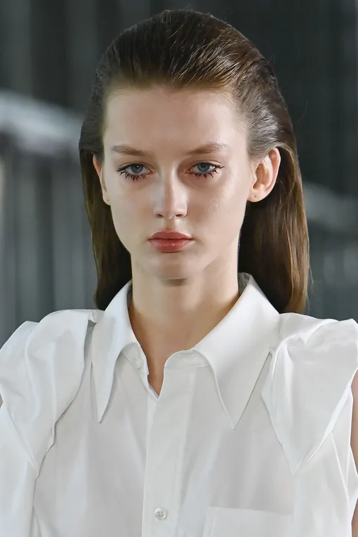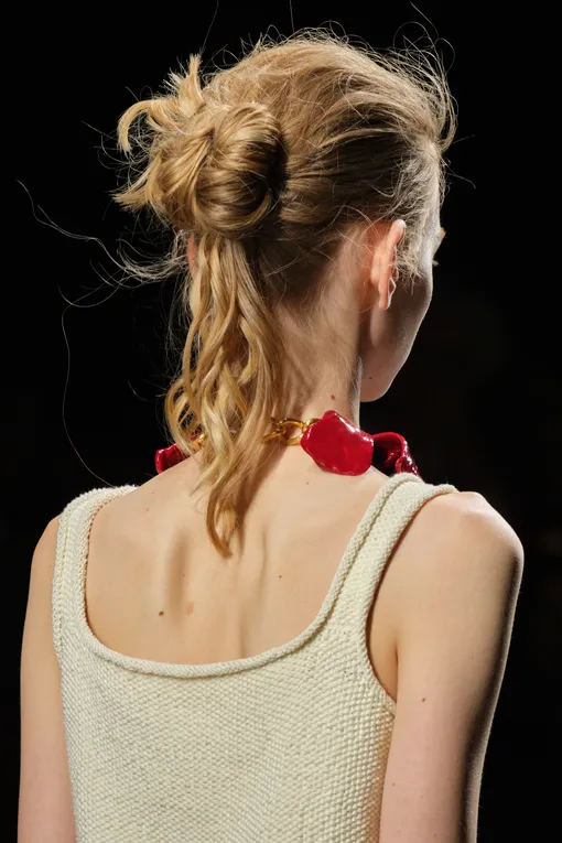 Несмотря на заявленную простоту и естественность, безупречно гладкие прически не сдают позиций и плавно переходят из текущего сезона в следующий. На показах коллекций Ermanno Scervino, Calcaterra и Toga волосы моделей были собраны в низкий хвост или пучок. Главное преимущество такой укладки в том, что она полностью открывает лицо, выгодно подчеркивая его черты. В центре внимания оказываются ваши глаза, губы, скулы, а не мешающие пряди. Кроме того, такая прическа становится настоящим спасением, если вы пропустили мытье головы и под рукой нет сухого шампуня. Ключевой момент в том, что волосы у корней должны плотно прилегать к голове, а длина — сиять. Речь не о блеске шиммера, а о здоровом «свечении», которого помогают достичь несмываемые уходовые средства и специальный крем-воск для выравнивания текстуры. Зачесывать локоны лучше щеткой с натуральной щетиной — она обеспечит равномерное распределение стайлинга.