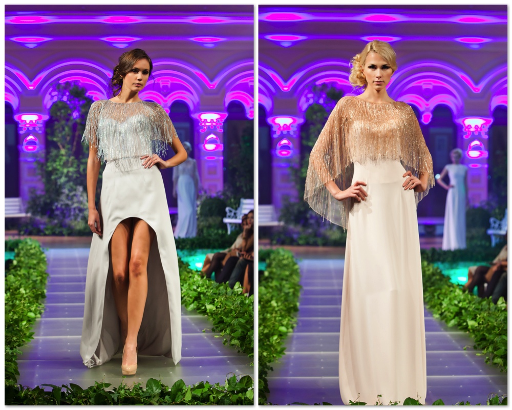 Для создания коллекции использовались мягкая итальянская сетка, шелк, кружево шантильи – то, что делает образ невероятно легким и элегантным. Особое внимание дизайнер уделила цветовому решению: на этот раз коллекция выдержана в двух оттенках – пастельном персиковом, добавляющим теплоты и нежности, и серо-голубом, придающем загадочности своими дымчатыми полутонами и благородным цветом.