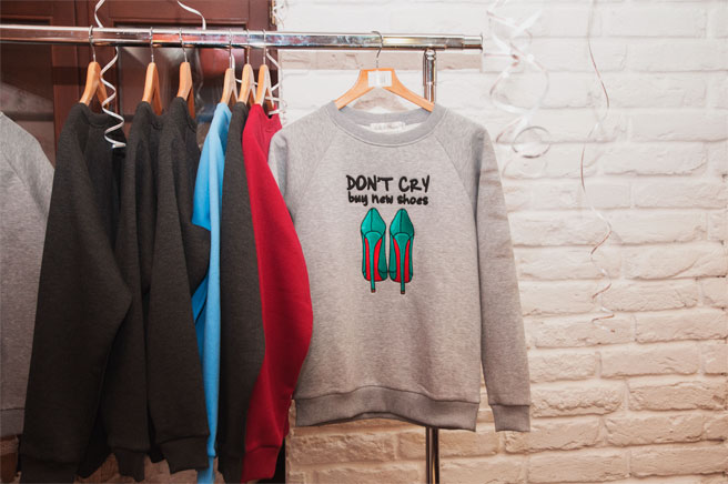 На презентации были представлены толстовки с новогодней тематикой, а так же с иллюстрациями-бестселлерами: «Dont cry, buy new shoes» и «Need more sleep». Это коллекция уютных, теплых, качественных и интересных толстовок! Все они выполнены из 100% хлопка, отлично сидят и сочетаются с любым гардеробом.