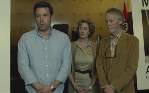 Не менее интересна постановка кадра в «Исчезнувшей». Вспомните этот момент, когда семья главной героини объявляет о ее поисках, а нерадивый муж стоит, окруженный ее плакатами. Он словно в ловушке между фотографиями своей жены.