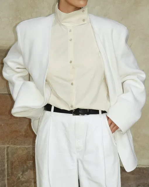 Не менее актуальны фасоны с акцентом на плечи — будь то мягкая драпировка или массивные подплечники (да-да, их используют не только для жакетов и пальто). В этом случае длина рубашки может варьироваться от тазовой кости до середины бедра, а рукава допустимы как классические, так и О-образные. Такое изделие мгновенно приковывает взгляды и делает любой аутфит ультрамодным. Тем, кто ищет еще более дерзкое решение, дизайнеры предлагают присмотреться к моделям асимметричного кроя — со скошенным низом спереди или сзади, драпировкой на талии с одной стороны или в разных местах. Допускается даже смещенная в сторону линия пуговиц, чтобы рубашка немного напоминала китель.