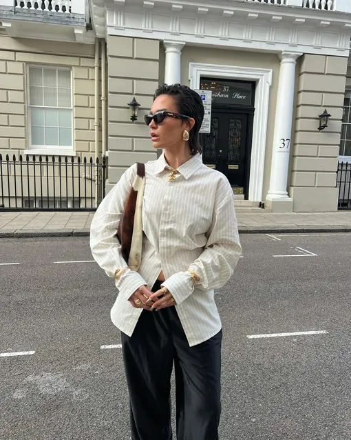 Главный тренд — рубашки в стиле оверсайз с удлиненной спинкой и широкими рукавами. Идеальная модель должна доходить как минимум до середины бедра, что позволяет носить ее как заправленной, так и навыпуск, комбинируя с узкими и широкими брюками. Манжеты у такой рубашки также предпочтительны удлиненные: их можно аккуратно подвернуть или оставить как есть.