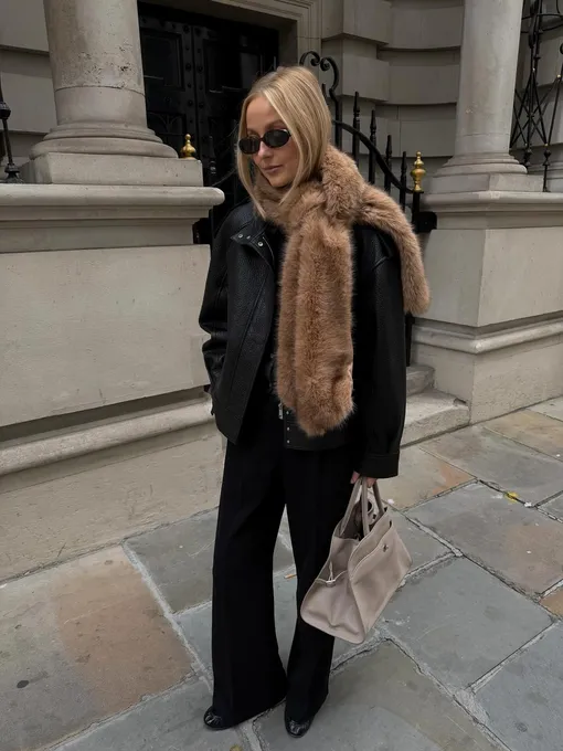 Мех — главный тренд 2025 и 2026-го, и в этом сезоне он должен расположиться не только на верхней одежде. Например, сердца инфлюенсеров уже покорили пушистые шарфы и боа из этого материала. Важно, чтобы ворс максимально напоминал натуральный: по цвету, структуре и длине. А вот носить его можно как угодно. Например, на улице, использовать точно так же как обычный шарф, обматывая вокруг шеи. А с легкими образами в помещении — превращать в боа, перекидывая чрез плечо.