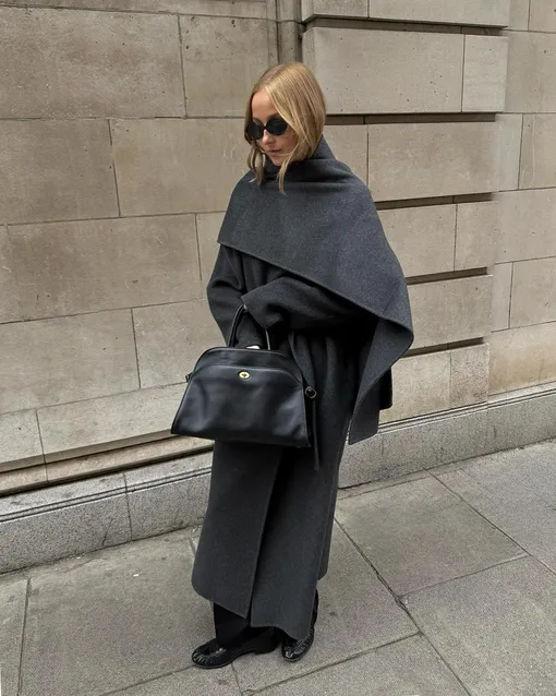 Еще один тренд этого сезона — кейпы. Правда, носить верхнюю одежду с прорезями для рук в зимние месяцы — не лучшее решение, если вы передвигаетесь не только на машине. Заменить его может плотный широкий шарф, который запросто трасформируется в накидку. Чаще всего такие модели напоминают пледы. Их шьют из шерсти или утраплотного трикотажа. Помните, что разноцветные варианты с принтами потеряли актуальность: предпочтение стоит отдавать однотонным решениям в универсальных оттенках. А чтобы превратить аксессуар в кейп, просто перекиньте его концами назад и зафиксируйте брошью или булавкой.
