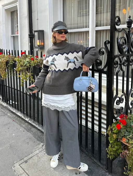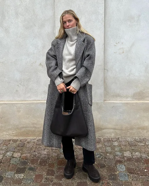 Объемный свитер — мастхэв для создания уютного лука. Наиболее удачная модель обычно свободного кроя, но обязательно вашего размера. Выбирайте изделия, изначально сшитые по лекалам оверсайз, если не хотите, чтобы лук получился неряшливым. В тренде укороченные варианты до талии, стандартные до тазовой кости или удлиненные до середины бедра. Рукав допустим как узкий и спущенный, так и О-образный или очень широкий. Идеальная горловина — высокая стойка, хотя классический круглый вырез тоже подойдет, главное, чтобы он не превращался в небрежную «лодочку».