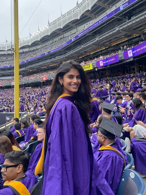 Кстати, даже после успешного старта модельной карьеры, о котором мы расскажем ниже, Бхавита Мандава не бросила учебу. Она работала специалистом по коммуникациям, училась, делала домашние задания по ночам и параллельно летала из Америки в Европу, чтобы попадать на показы и заниматься моделингом. В мае 2025-го Бхавита получила магистерский диплом.