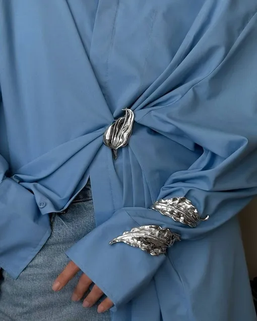 Рукав — отличное место для акцента, о котором многие забывают. На рубашке или, например, пальто брошь заменит запонки или пуговицы, собрав манжет. На объемном свитере попробуйте приколоть такое украшение в районе локтя. Главное, чтобы материал в этом месте не собирался в неудобные складки.