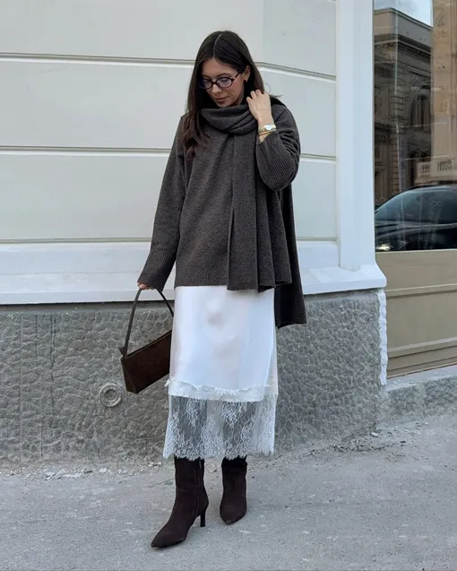 Такие цвета отлично смотрятся в монохромных комплектах. Однако сначала проще добавить в гардероб один акцент: пальто, сумку или сапоги в подобных тонах. Они мгновенно сделают лук более актуальным.
