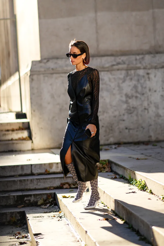 Кожаный сарафан зачастую смотрится слишком строго, поэтому просто необходимо добавить к нему что-нибудь нежное. В таком случае нам поможет фантазийная блуза. Присмотритесь к рубашкам из полупрозрачного материала и моделям с рюшами и воланами. Кстати, «наивная» блуза отлично гармонирует не только с кожаными платьями, но и с вариантами из вельвета или плотного хлопка — это универсальное и практичное сочетание на все случаи жизни.
