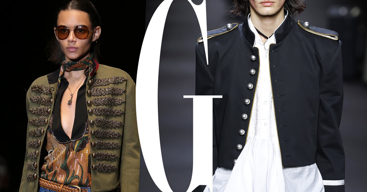 Особенность модного жакета — высокий воротник или округлый вырез, латунные пуговицы и акцентный декор-вышивка. Впервые похожие модели появились в венгерской армии. Но у большинства подобное обмундирование ассоциируется с наполеоновскими войсками, его носили члены гусарских полков. Как это часто бывает, из военной формы деталь гардероба перекочевала в коллекции модных брендов. В нулевые, например, они появлялись у Marc Jacobs, Alexander McQueen. Своей визитной карточкой, кстати, «мундиры» сделал Эди Слиман: он включал их в линии для Dior Homme, Saint Laurent. Но настоящим хитом были жакеты Balmain. Кстати, в начале века их носила не только Кейт Мосс но и, например, Бейонсе и Рианна.