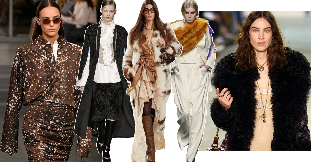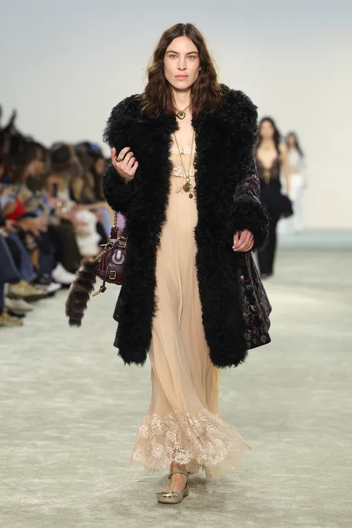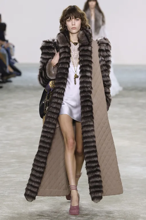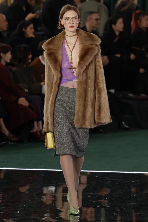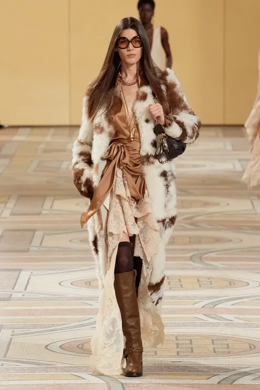 Думаете, с наступлением холодов про бельевой стиль пора забыть? Это совсем не так. Главный тренд 2025-го — игра на контрастах. Поэтому микс легких изделий с кружевом и теплой зимней одежды — один из ведущих трендов. Топы, платья и юбки с ажурной отделкой остаются актуальны. Теперь короткие изделия можно надевать под джемперы и свитеры, а длинные — сочетать с высокими сапогами и колготками. Кстати, особенно эффектно такие изделия смотрятся с плотным трикотажем и мехом, как на шоу Chloe и Gucci.