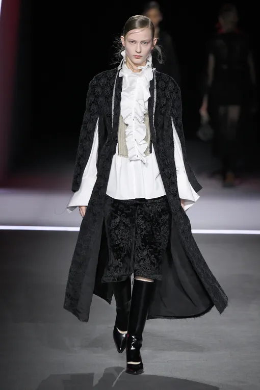 Повсеместное увлечение эстетикой эпохи рококо сдает позиции: корсеты и пышные юбки уходят в прошлое. Но лаконичные детали, отсылающие к эстетике придворных особ XVIII века остаются актуальны. Теперь платья заменят характерные блузы. Их отличают летящие силуэты и объемный декор. Например, внимание точно стоит обратить на модели с воланами и жабо. Сочетать их можно с костюмными жилетами, трендовыми кейпами. А чтобы образ точно напоминал о стиле аристократии, завершить его можно еще одной актуальной деталью — жокейскими сапогами. Референсы подобных образов можно найти у Dior и Raloh Lauren.
