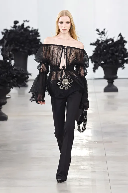 Еще одна эстетика, которая с каждым месяцем становится только популярнее, — гранж. Мы все чаще вспоминаем дерзкие образы Кейт Мосс и рок-звезд 2010-х. Важно, что стильные образы не должны полностью отсылать к лукам музыкантов, достаточно лишь пары деталей в базовых аутфитах. Например, присмотритесь к прозрачным блузам и топам как у Isabel Marant или дополняйте луки массивными украшениями из серебра, отылсающими к этму стилю. Примеры последних деталей легко найти в осенне-зимней коллекции Blumarine.