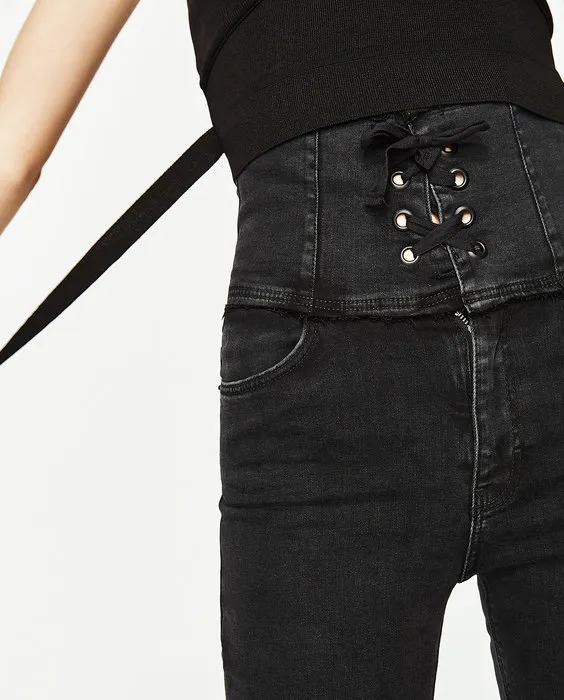 Вы устанете завязывать бесконечную шнуровку и застегивать молнии и пуговицы еще в примерочной, а что же будет, когда вы в третий раз за день захотите посетить дамскую комнату? В общем, всячески предостерегаем от покупки пары джинсов с завышенной талией на корсетной шнуровке: слишком сомнительный тренд, чтобы испытывать столько мучений.
