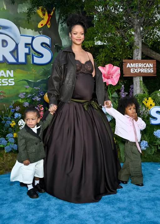 Не обошлось и без запоминающихся образов звезд. Например, один из самых ярких и удачных за год: выход беременной Рианны с двумя сыновьями на премьере мультфильма «Смурфики в кино». На удивление внимание приковал не лук самой певицы, а наряды ее детей: они первыми примерили одежду из дебютной мужской коллекции Джонатана Андерсона для Dior.