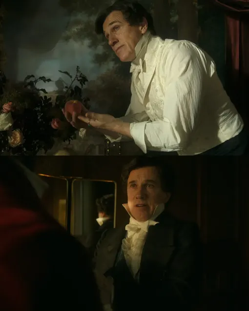 Отдельное внимание стоит уделить фасонам платьев Элизабет. В интервью, которое Хоули дала после премьеры картины, она призналась, что референсами служили портреты самой Мэри Шелли. А во время примерок Гильермо настаивал на том, чтобы кринолины платьев оказались как можно больше. Кстати, из-за этого художникам даже пришлось переделывать некоторые декорации, расширяя дверные проемы.