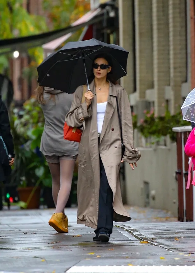 Теперь же смелый тренд решила опробовать Ирина Шейк. Папарацци заметили знаменитость, когда гуляла со своей дочерью Леей по Нью-Йорку — фото можно увидеть здесь. Российская супермодель — регулярная участница стритстайл-хроник, а посоперничать с ней может разве что Эмили Ратаковски. Для прогулки по осенним улицам города Ирина выбрала довольно простой, но при этом запоминающийся наряд.