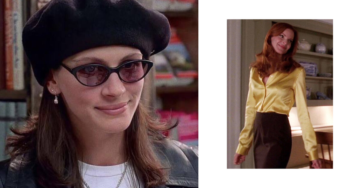 Анна Скотт, которую сыграла Джулия Робертс, — голливудская звезда, которая влюбляется в «обычного» продавца из книжной лавки. И образы, которые героиня подбирала для встречи с Уильямом Такером, повседневные и расслабленные — так звезда старалась не выделяться из толпы. Но даже такой непримичательный аутфит осенью-2024 считается трендовым. Помимо свободного кожаного пиджака, с которым Анна срифмовала прямые брки, изюминкой аутфита стал берет в духе француженок — в этом сезоне подобный головной убор особенно актуален. Главная фишка наряда в том, что все изделия, кроме светлой футболки, подобраны в тон. Так что повторить такой образ не составит никакого труда!