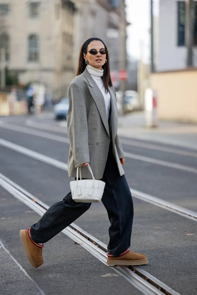 Несмотря на то, что угги ссчитаются самой комфортной зимней обувью, носить их не снимая не стоит. Дополняйте этой уютной парой расслабленные образы с пуховиками, шубами и дубленками-авиаторами, но избегайте аутфитов с пальто. Лучшими напарниками такой пары станет широкий низ — например, трикотажные брюки или джинсы. Но уютные джоггеры и утепленные легинсы тоже подойдут. А вот с костюмными или кожаными брюками угги носить не стоит. И точно откажитесь от стилизаций с юбками и платьями — исключение составляют только расслабленные вязаные модели, напоминающие безразмерные свитеры.
