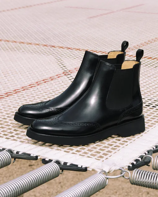 Бесспорным лидером среди материалов выступает гладкая кожа. Она практична, влагостойка, проста в уходе и с годами сохраняет безупречный вид — а потертости и заломы лишь придают ей винтажный шарм. Вы можете выбирать как глянцевые, так и матовые варианты: оба выглядят современно и уместно. А вот от лаковой кожи лучше отказаться: она чересчур акцентна и совершенно непрактична, поскольку любая царапина бросается в глаза. Второй по популярности материал — замша. Она придает образу «тактильное благородство» и идеально сочетается с осенними тканями, такими как шерсть и твид. Мы рекомендуем заранее обработать такие челси водоотталкивающей пропиткой и обзавестись специальной щеткой для ухода.