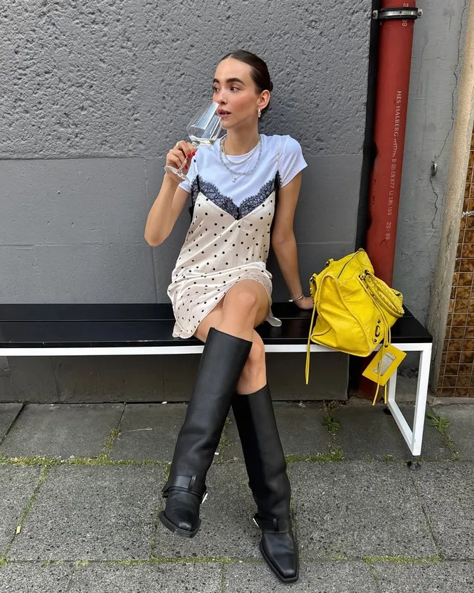 Главные герои сезона — сапоги-трубы, популярность которых не ослабевает уже несколько лет. Их успех объясняется универсальностью: прямое голенище, высота до колена и лаконичный дизайн делают эту модель идеальной основой для самых разных аутфитов. Лучше выбирать кожаные или резиновые варианты (лак и замша менее практичны). Они не боятся ни дождя, ни луж, ни первых заморозков. В тренде сдержанные оттенки: шоколадный, бордовый, холодный бежевый, хаки, черный или графитовый. Важна и ширина голенища. Чтобы пара была практичной, лучше, чтобы «трубы» оказались на пару сантиметров больше икр — облегающие и чересчур просторные модели менее функциональны. Правильно подобранные сапоги сочетаются с любыми вещами: с прямыми или узкими джинсами, трикотажными платьями-миди или юбками-мини, объемными пальто или модными кожаными куртками. Главное — избегать перегруженных деталями пар: чем проще дизайн, тем дольше обувь останется актуальной.