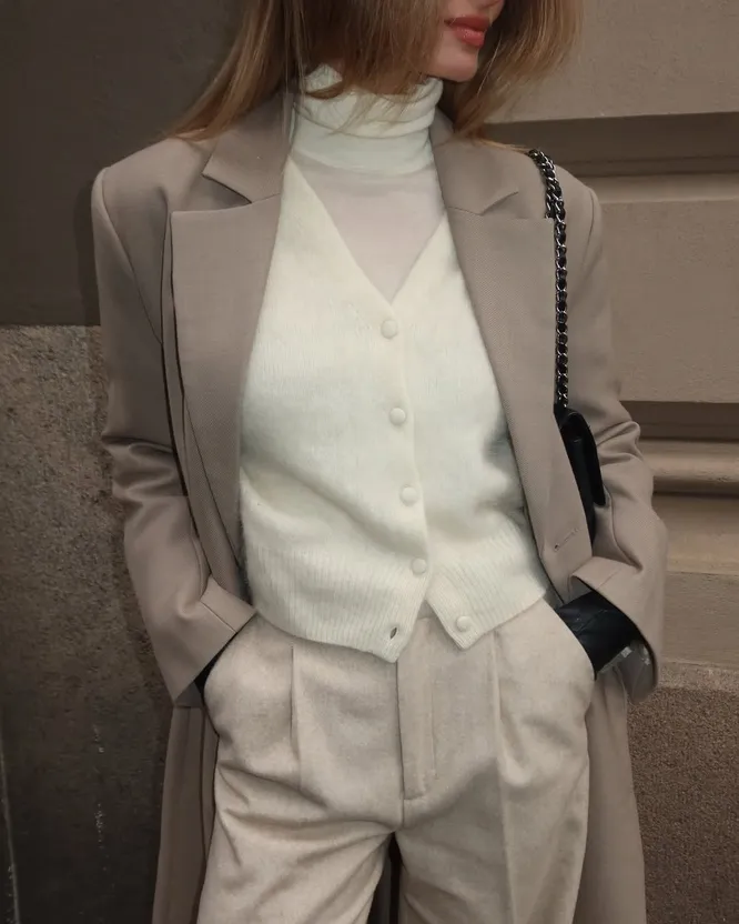 Пару лет назад тонкие кардиганы были одним из главных трендов. К 2026-му они превратились в базу, которую можно носить буквально каждый день. Выбирайте облегающие варианты. Просторные сложно стилизовать, к тому же они почти гарантированно нарушат пропорции фигуры. Важно следить и за тем, чтобы вещь не была слишком плотной, иначе вы сможете носить ее только в холодные месяцы. Чтобы кардиган не надоел, остановитесь на нейтральной палитре - ахроматические белый, черный или серый всегда уместны. А если вам по душе пастельные оттенки, обратите внимание на нежно-голубой и розовый: они не потеряют актуальности на протяжениии всего 2026-го. Зимой такую вещь можно интегрировать в многослойные образы, а в теплые месяцы носить без нижнего слоя.